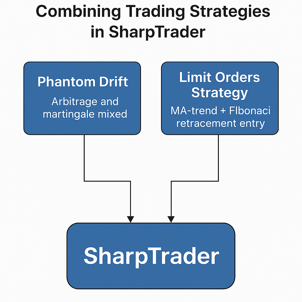 - No hard links on entry triggers: MA+Fibo reacts to price structure; Phantom Drift reacts to speed/flow differentials.